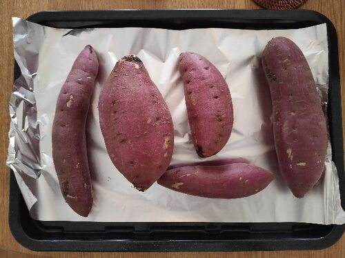 やっぱり、焼きいもが一番! さつまいもがたくさん手に入りました。 早速、ヘルシオで焼き芋を作ります。 角皿にアルミホイルを敷いて、 焼き芋を並べます。 冷めてもおいしいので、たくさん焼きます。 「クックブックメニュー」 →「検索」 →「メニュー名(5…