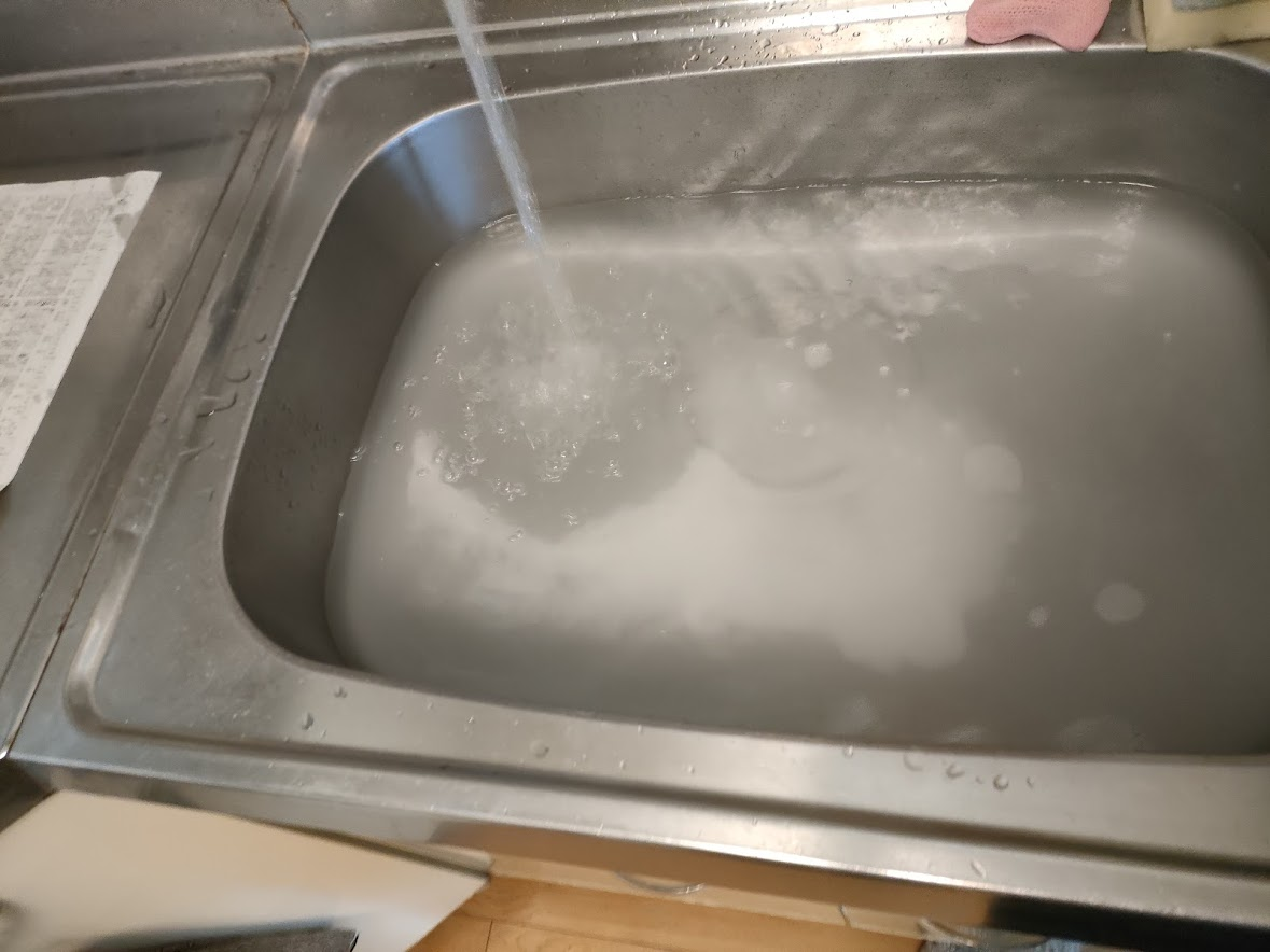 (水だと酸素系漂白剤が溶けないため、お湯を準備します)